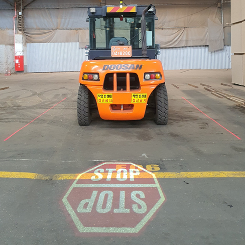 지게차가 움직이면 빨간 라인이 먼저 깔리니까,
