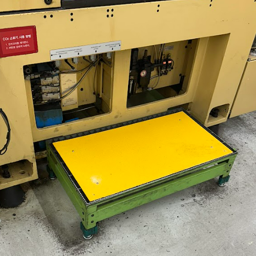 그래서 설비 앞 작업 구역에 보행로커버를 깔아줬는데, 생각보다 효과가 좋았습니다.
