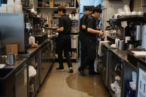 • 세척 후 수막 슬립 위험